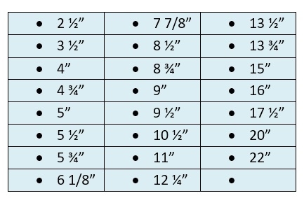 En Barrenas Tricónicas con dientes de acero contamos con las siguientes medidas: